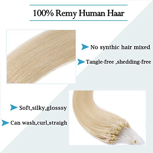 SEGO Extension Microring Capelli Veri Anelli 100 Ciocche 45cm - 100% Remy Human Hair Biondi Anellini senza Clip 50g #60 Biondo Platino