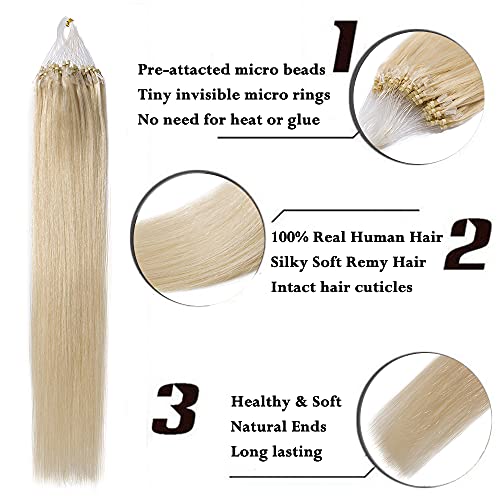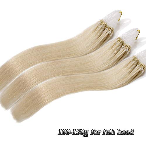 50cm Extension Microring Capelli Veri 100 ciocche #60 Biondo Platino 100% Remy Human Hair Extension Anelli, Peso 50g