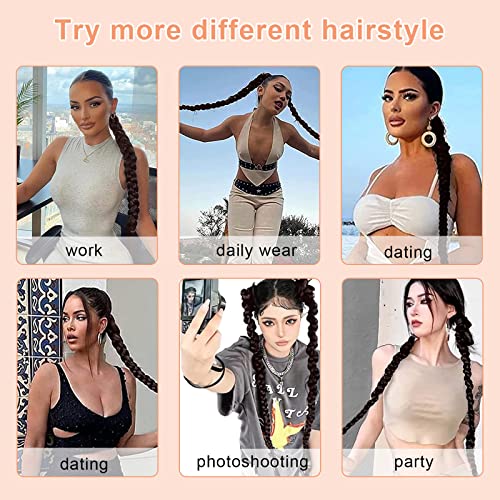 Specifiche della parrucca: 1 coda di cavallo e 10 elastici. Befor treccia 81 cm (32 pollici), lunghezza treccia 76 cm (30 pollici), peso: 150 g, colore: marrone scuro.