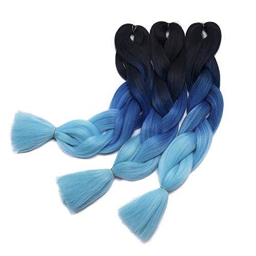 SEGO Extension Treccine Africane Afro Trecce Lunghe 60cm Capelli Sintetici Treccia Finta 3 Ciocche Crochet Fibre 60cm 300g/pack - Nero/Blu Scuro/Blu Chiaro