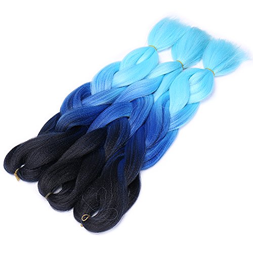 Extension Treccine Capelli a Treccia Finta Ombre Braiding Hair Braids Extensions 100g/pcs, Confezione da 3 Ciocche,Tre Tonalità 48# Nero/Dark Blu/Blu