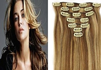 Clip in extensions capelli umani 100% Remy 12/613 # Light Brown Mixed with Light Blonde 45,7 cm 7PCS 70 g (consigliamo di acquistare 2 - 5 set)