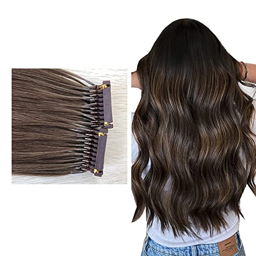 6D Hair Extensions Human Hair, Dark Brown 6D Hair Extension, Machine Fast No Trace Feather Extension Hidden Straight Hair Extension, 10 Row,16inch