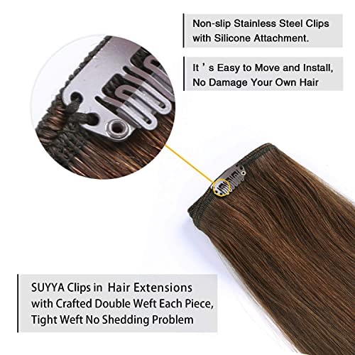 Clip in Hair Extensions 6PCS Set 22 pollici Capelli lisci spessi Pezzi Fibra sintetica Doppia trama Capelli morbidi per le donne Testa piena (Marrone medio)