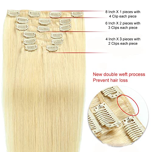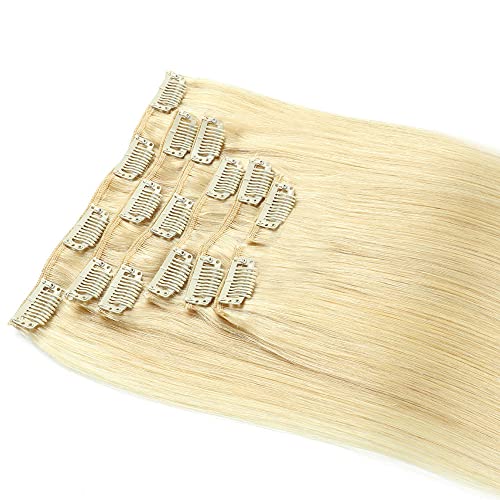 Clip in Hair Extensions 6PCS Set 22 pollici Capelli lisci spessi Pezzi Fibra sintetica Doppia trama Capelli morbidi per le donne Testa piena (Bionda sbiancata)