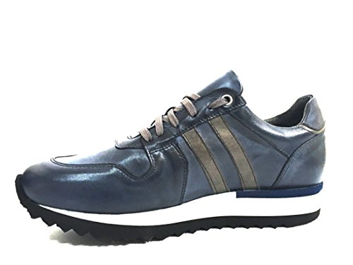 EXTON 555 Blu Scarpa Uomo Sneaker Running Pelle Made in Italy Fondo Micro