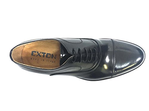 EXTON 1371 Spazzolato Nero Scarpa Uomo Allacciata Made in Italy Pelle Fondo Cuoio