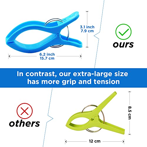 【Multiuso & Conveniente】 Dimensioni Jumbo per renderlo versatile.Non funzionano solo come clip per telo mare per sedie a sdraio, ma sono ideali anche per fissare vestiti, lenzuola, trapunte su stendibiancheria per evitare che possano soffiare sempre in una giornata ventosa.