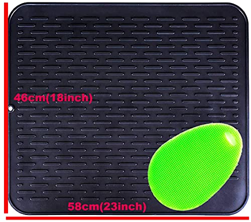 Extra Large in silicone tappetino scolapiatti in silicone Holder, Sottopentola, impermeabile, isolamento termico, antiscivolo 22x18 inch(54x46cm) Black