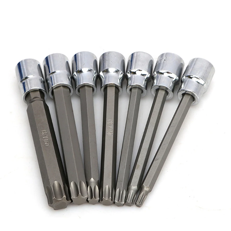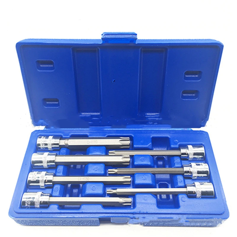 7pcs 3/8" extra long torx star bit socket set +case T25 T30 T40 T45 T50 T55 T60