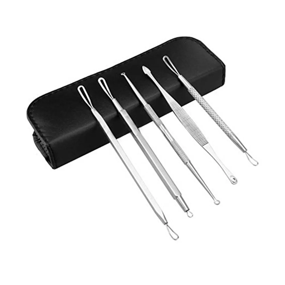 Acne Extractor Set 5Pcs Stainless Steel Blackhead Remover Pimple Extractor Head Pore Deep Cleansing Tool Face Skin Care Tool