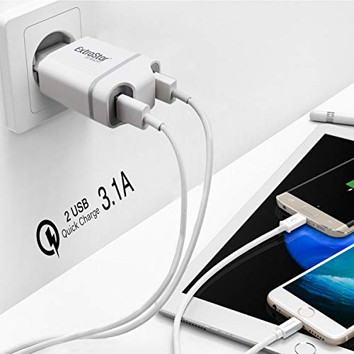 EXTRASTAR Caricabatterie da Muro 2USB (5V 3.1A),Kit di Ricarica,Compatto per iPhone,iPad,Huawei,Samsung Galaxy,Tablet e Altri Dispositivi USB (Bianco).