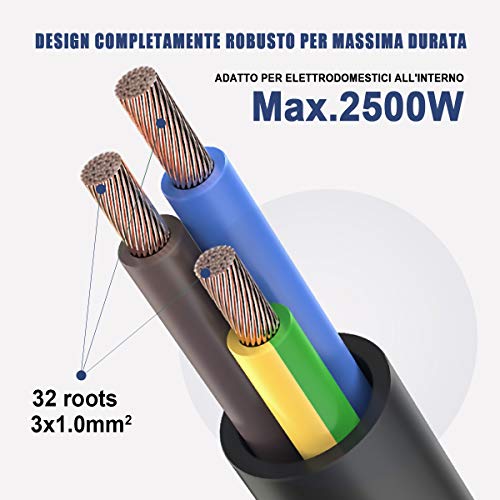 Protezione sovraccarichi e sovratensione Oxide Varistor, cavo di alimentazione lungo 1,5 metri con spina Italiana 16A, cavo: H05VV-F 3G 1.0 mm2.