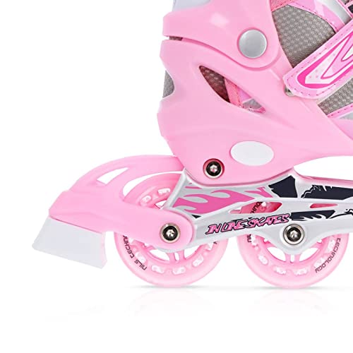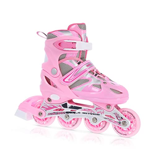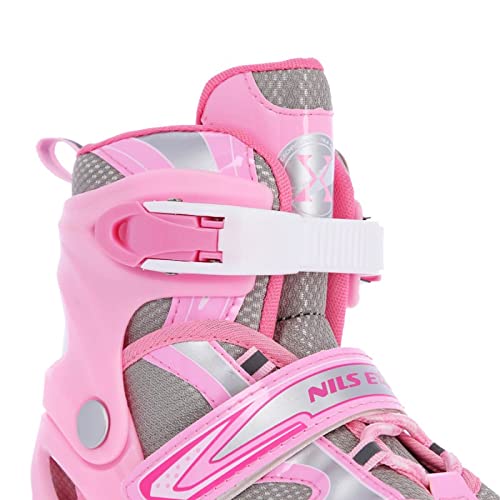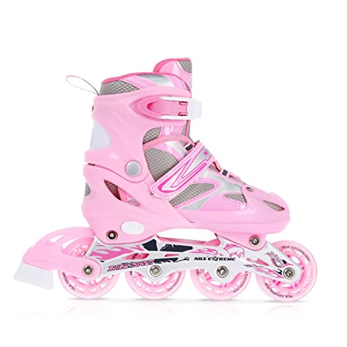 Nils Extreme - Pattini in linea per bambini, regolabili, 2 in 1, colore: rosa, L (39-42)