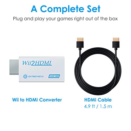 Extremella Convertitore da Wii a HDMI & Set di Cavi, Adattatore Wii2HDMI, Connettore Console di Gioco Wii a HDMI Video 60Hz 720P 1080P & Uscita Audio 3,5mm (Bianco)
