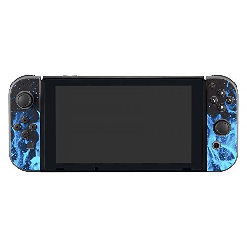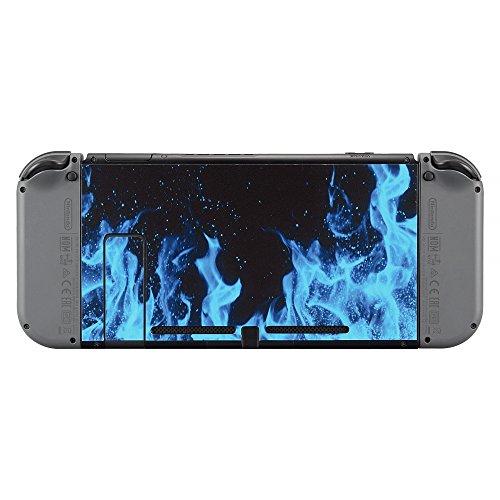 EXtremeRate Adesivo Skin Pellicola Protettiva per Nintendo Switch Console Joycon Controller Dock Impugnatura Sticker con Protezioni per Schermo per NS Console-Fiamma Blu