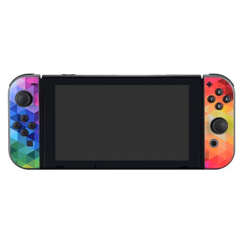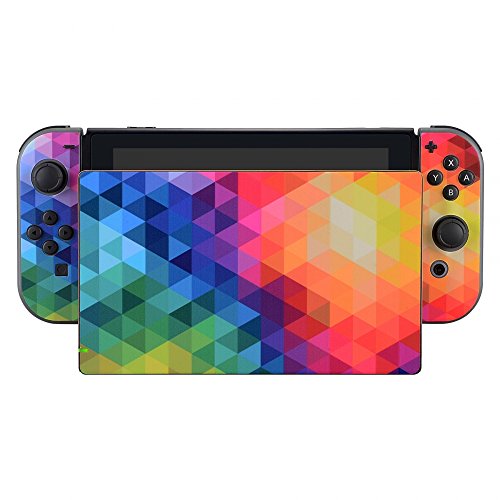 EXtremeRate Adesivo Skin Pellicola Protettiva per Nintendo Switch Console Joycon Controller Dock Impugnatura Sticker con Protezioni per Schermo per NS Console-Triangolo Colorato