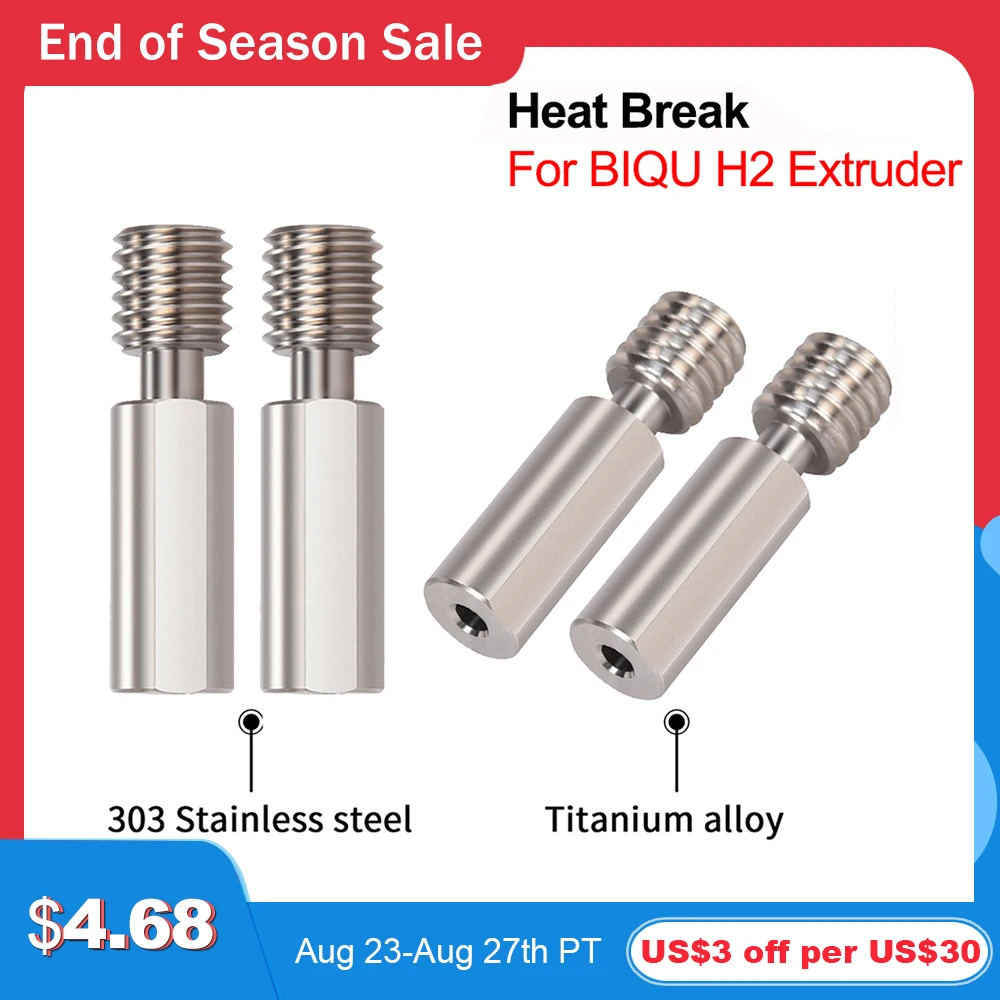 BIQU H2 Extruder Heat Break All Metal Titanium Alloy GRADE5 Heatbreak 3D Printer Parts For B1 Ender 3 V2.0 Upgrade Hotend Kits