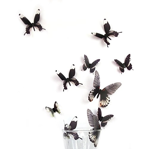 Extsud DIY Adesivi Murales, 18 Pezzi Farfalle Realistiche Misure Diverse PVC 3D Wall Sticker Traslucido, Decorazione da Parete per Casa Negozio Camerette Asilo Fai da Te (Nera Serie)