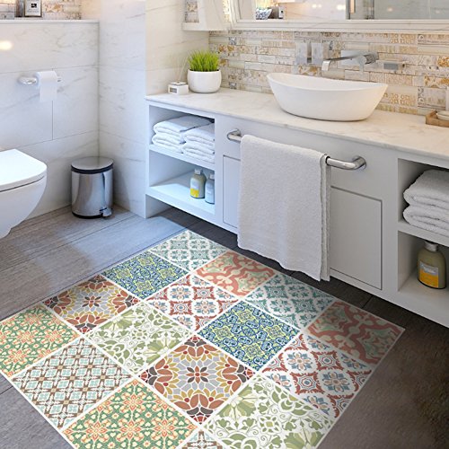 EXTSUD Adesivi per Piastrelle 50x50cm Stile Mediterraneo Wall Stickers da Mattonelle Parete in PVC Impermeabile Autoadesivo Decorazione per Cucina Bagno Fai da Te Set di 4 Pezzi