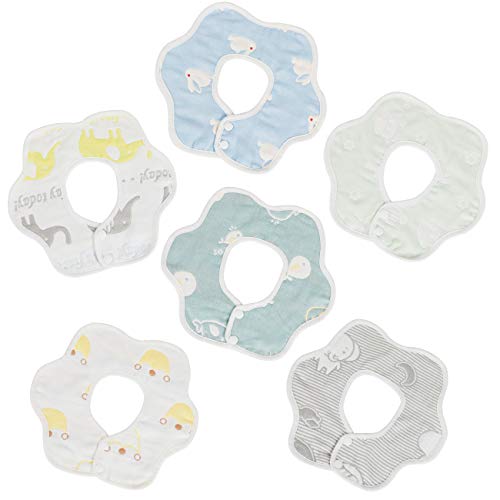 EXTSUD Bavaglini Neonati Set da 6 Pezzi Bavaglini in Garza Cotone a Forma di Fiore 360° Ruotabile Asciugamano Saliva Bimbi con Doppia Fibbia Panno per Ruttino Riutilizzabile (Bimbo)