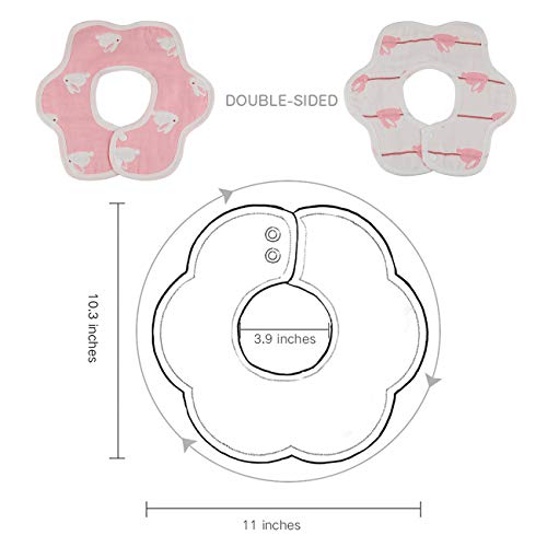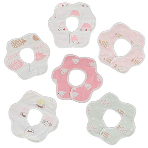 EXTSUD Bavaglini Neonati Set da 6 Pezzi Bavaglini in Garza Cotone a Forma di Fiore 360° Ruotabile Asciugamano Saliva Bimbi con Doppia Fibbia Panno per Ruttino Riutilizzabile (Bimba)