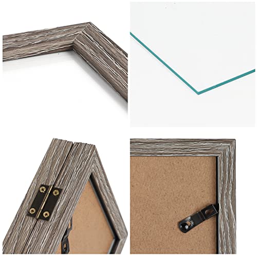 Portafoto: Le due cornici rustiche di colore grigio sono incernierate a doppia mandata al centro, Il supporto è fissato con tre linguette girevoli, semplici da inserire le vostre foto.