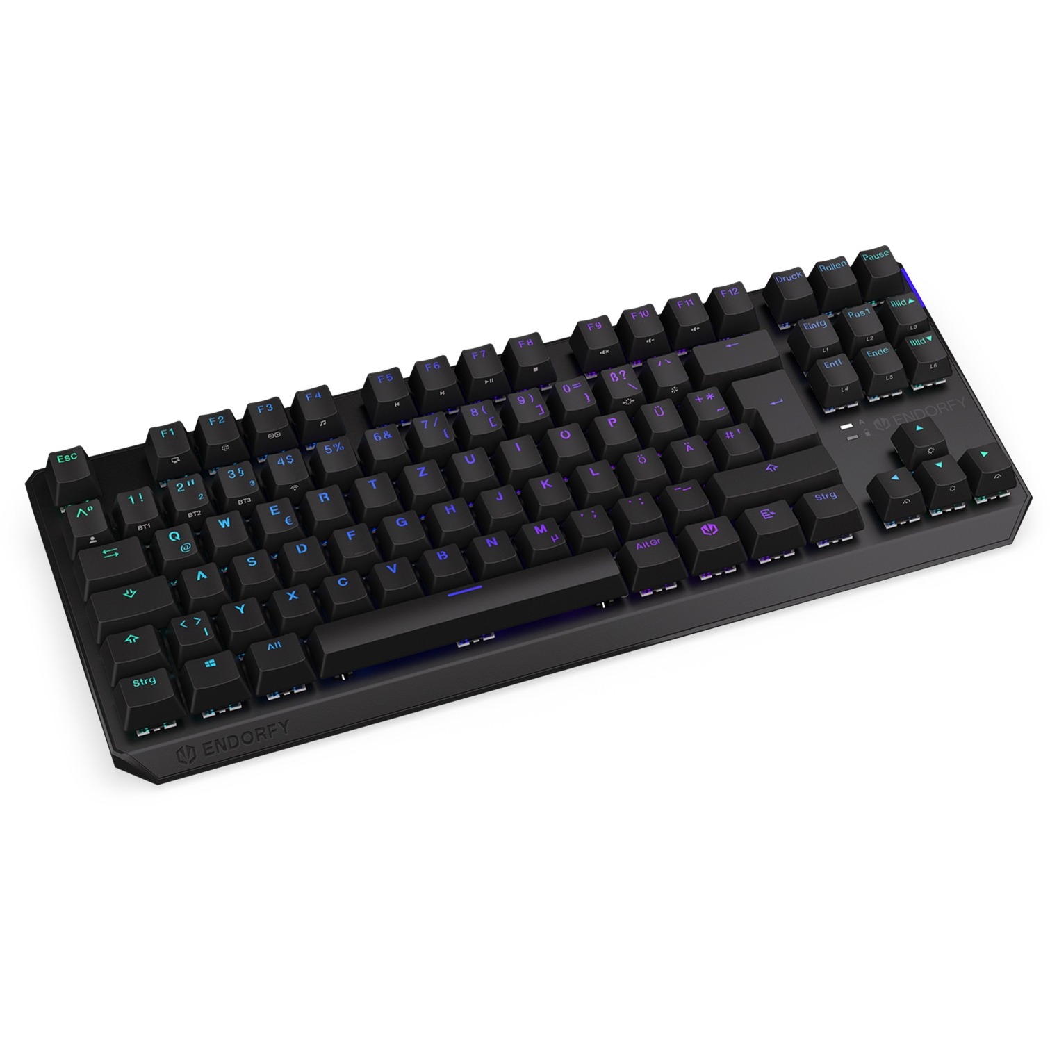 ENDORFY Thock TKL Wireless è una di quelle piccole tastiere da gioco di cui ti innamori a prima vista. Domina nei giochi, nelle sfide creative ed eccelle anche sul lavoro, ma la cosa più importante è che può fare tutto in modalità wireless e comodamente dal divano. Grazie al loro formato TKL, puoi semplicemente metterli nello zaino e portarli con te al prossimo torneo di eSports. Il corpo del Thock TKL Wireless è rinforzato con un top in alluminio e i tasti sono dotati di copritasti PBT di alta qualità, che sono particolarmente resistenti grazie alla tecnologia Double Shot e sono in attesa di essere utilizzati in combattimento. Gli interruttori meccanici Kailh BOX ultra robusti offrono una durata di 70 milioni di clic e possono essere facilmente sostituiti con qualsiasi altro interruttore a 3 o 5 poli grazie alla tecnologia hot-swap. Il Thock TKL Wireless incanta con una straordinaria illuminazione RGB e offre un sacco di comfort durante il gioco grazie ai piedini regolabili in altezza e alla gestione integrata dei cavi.
