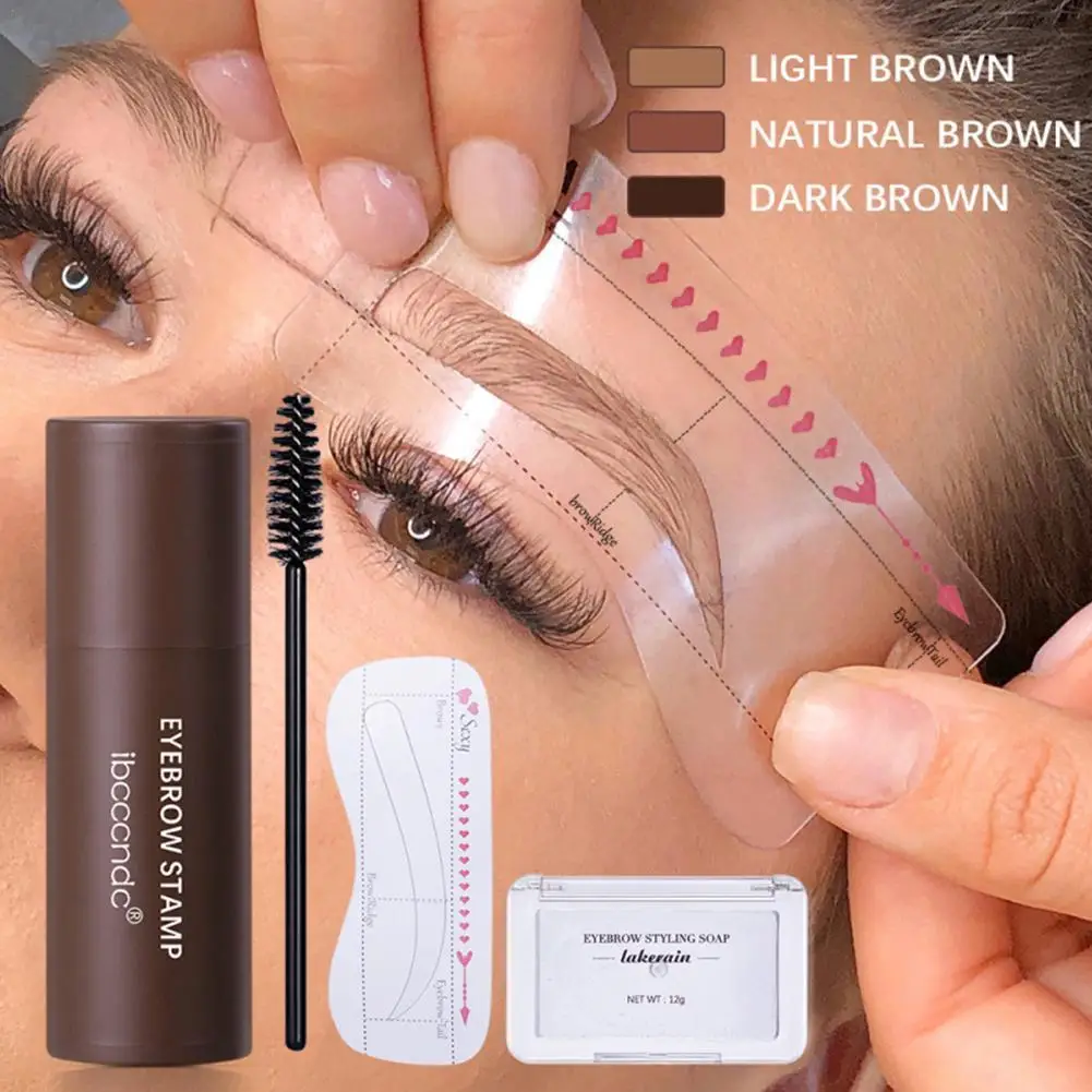 One Step Eyebrow Stamp Shaping Kit Eye Brow Stencil Waterproof Eyebrow Stamp Powder Makeup Reusable Eyebrow Stamp Stencil Kit