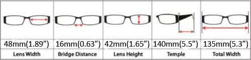 'Prodotti Dimension Materiale della struttura: plastica, glaeserbr nastro: 1 7/8 " (48 mm), Larghezza del telaio: 5 3/8" (136 mm), Altezza lenti: 1 5/8 " (42 mm), Altezza telaio: 1 3/4 " (45 mm);
