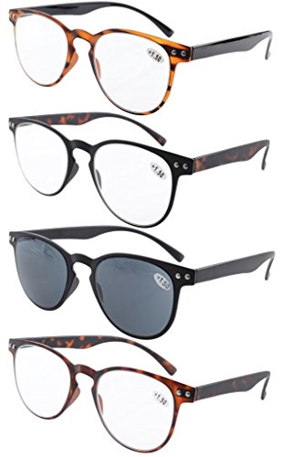 Eyekepper 4-Pack Rotonda Full Coverage ultrasottile Flex frame occhiali da lettura e sole per Lettori +3.0