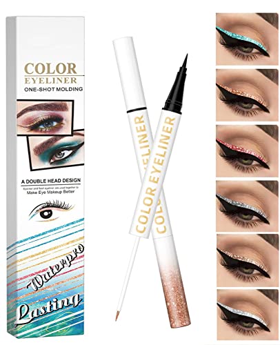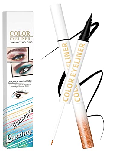 【Design a Doppia Testa】Questo eyeliner liquido lucido ha un design a doppia testa, 2 in 1 eyeliner liquido perlato metallico shimmer con eyeliner liquido impermeabile, doppio colore eyeliner cucitura stampaggio, facile da creare una lunga durata brillante scintillante trucco eyeliner colorato.