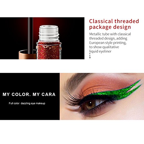 [12 diversi colori brillanti]: 12 eyeliner colorati in un colore metallico unico e speciale. Puoi scegliere diversi colori in base ai diversi stili di trucco. L'esclusiva tonalità luccicante è perfetta per il trucco europeo e americano, splendida e unica, aiutandoti a creare un trucco per gli occhi luccicante