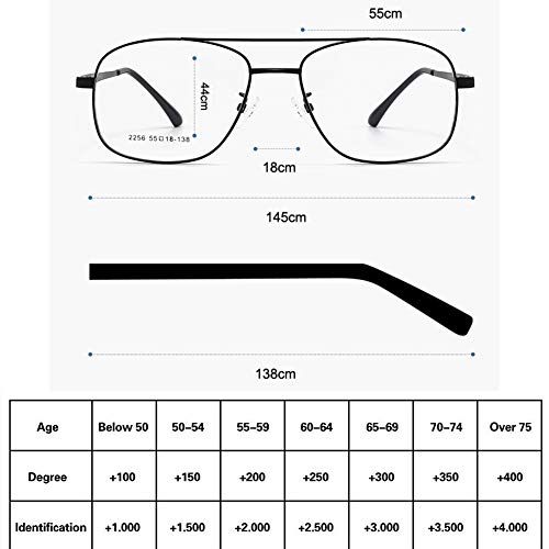 Dimensione del prodotto: Larghezza dell'obiettivo: 55mm, Altezza dell'obiettivo: 44 mm, Ponte del naso: 18mm. Credo che i nostri occhiali da lettura alla moda soddisfino o superano le tue aspettative. Se avete domande, vi preghiamo di contattarci in tempo, risponderemo entro 24 ore!