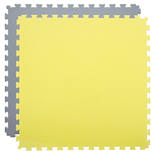 EYEPOWER Tappetino Puzzle per Sport 90x90cm incl Cornice Eva 20mm di Spessore Tappeto Protezione Pavimenti Estensibile Double-Face Grigio Giallo
