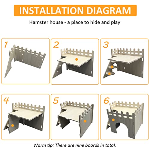 【Facile da installare】La nostra casetta per criceti utilizza un metodo di giunzione multipla delle tavole, non richiede l'uso di colla o chiodi, è facile da installare e il prodotto finito è solido e non facile da smontare.