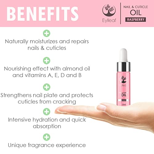 Eylleaf Olio Cuticole Unghie - Olio di Mandorle e Vitamina E per Sciogli Cuticole, Profumo di Lampone 15ml