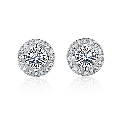 Materiale: orecchini in argento Sterling 925, con pietra in zircone cubico 5A e taglio rotondo a brillante, circondata da altri piccoli zirconi cubici brillanti. Regalo perfetto per la propria fidanzata.