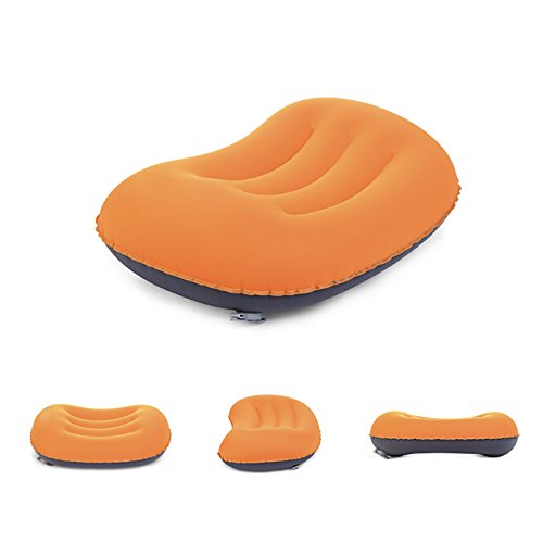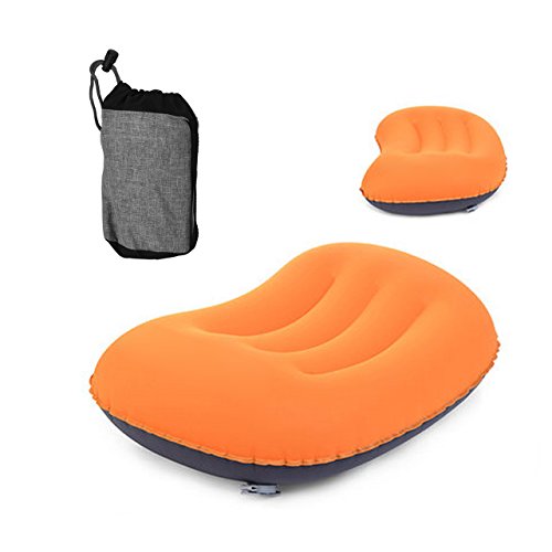 Eyourlife Cuscino Gonfiabile da Viaggio Cuscinetto Poggia Testa Collo Morbido Leggero Piegabile con Borsetta per Campeggio Aereo Treno Auto Spiaggia Mare - Arancio