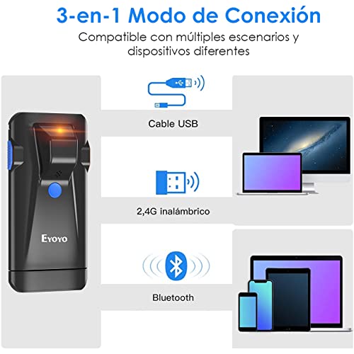【3 modalità di connessione per adattarsi a qualsiasi processo di lavoro】: lo scanner di codici a barre Bluetooth dotato di 3 modalità di connessione, include Bluetooth, 2,4 G wireless e cavo USB. Il design innovativo si trasforma facilmente tra l'operazione cablata e senza cavo, il cellulare con clip e senza clip. Come le esigenze cambiano per poter essere facilmente collegato a notebook, computer, smartphone e tablet.