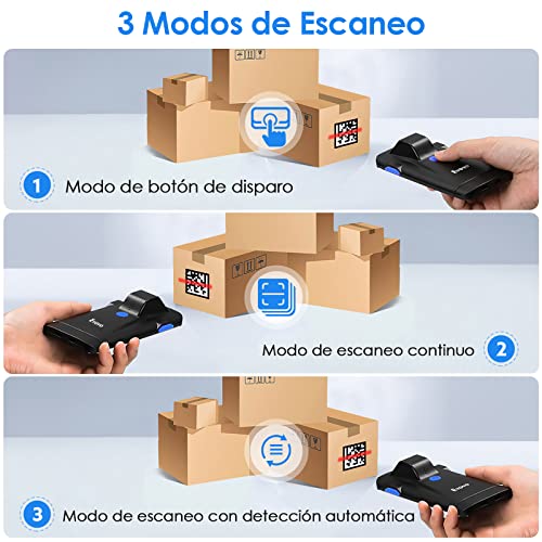 3 pulsanti di scansione + 2 modalità di scansione: il design con 3 pulsanti di scansione consente allo scanner di codici a barre versatile di adattarsi a qualsiasi ambiente di lavoro. Dispone della modalità di attivazione chiave, la modalità di rilevamento automatica e la modalità continua. Quando è in modalità di rilevamento automatico o in modalità continua, lo scanner verrà letto codici a barre una volta rilevato senza premere il pulsante.