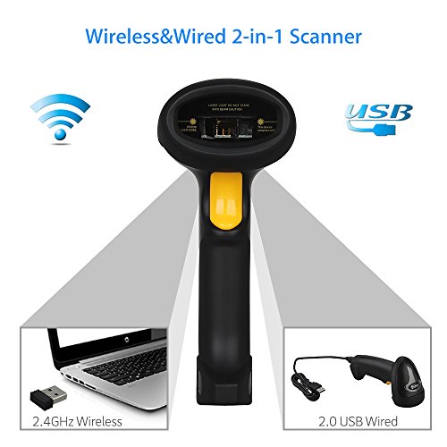 Eyoyo - Lettore palmare per codice a barre, automatico (wireless 2,4 GHz + cavo USB 2.0), ricaricabile