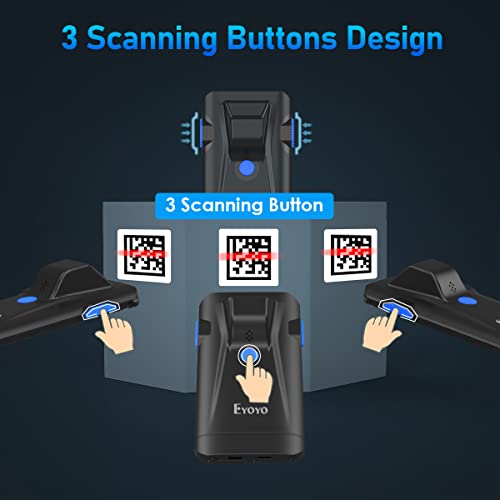 【3 SCANNING BUTTON, 2 SCANNING MODE】- Design with 3 scanning buttons lets the ultra-versatile Eyoyo barcode scanner can fit anyone and any working environment.Key trigger mode + Auto-sensing mode +Continous mode. When you change the mode to auto-sensing mode or continuous mode, the scanner will automatically read the barcode once the barcode is detected without pressing the button.