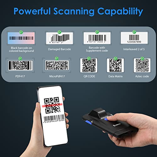 Eyoyo 2D Portable Bluetooth Barcode Scanner,Phone Back Clip On Scanner,3-In-1 USB & Wireless, Rechargeable Bar Code Reader for Retail Warehouse Inventory Management Compatible with iPhone,Android, iOS