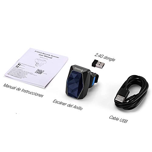 Eyoyo 1D 2D QR Ring Barcode Scanner, Barcode Reader Bluetooth 2.4G Cavo USB Wireless Compatibile con PDF417 Data Matrix Display Scan per Android Windows MacOS