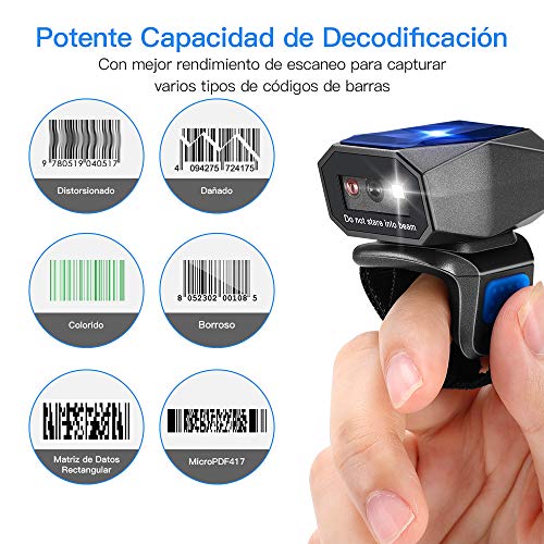 Uno scanner di codici a barre migliore per te: il design ad anello portatile ti consente di usarlo posizionandolo sul dito per la scansione. Estremamente mani libere e migliorerà notevolmente l'efficienza del lavoro. Con batteria ricaricabile da 450 mAh per continuare a lavorare facilmente per 10 ore. Ideale per organizzare e catalogare i codici a barre, indipendentemente dal fatto che lavori in libreria, negozio online, negozio di vendita o magazzino.
