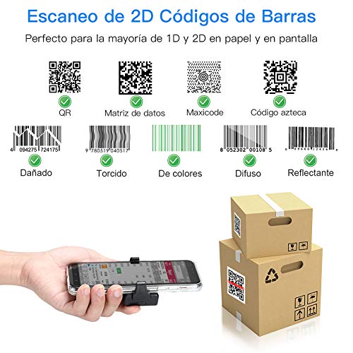 Eyoyo 2D Scanner di codici a barre Bluetooth, 1D QR Lettore di codici a barre wireless con clip posteriore per cellulare, Android, iOS, Biblioteca, Magazzino e Supermercato(EY-022)