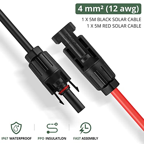 EYPINS 5m 12 AWG Cavo del Pannello Solare(4mm²),Cavo di Prolunga per Pannelli Solari con Connettore Maschio e Femmina