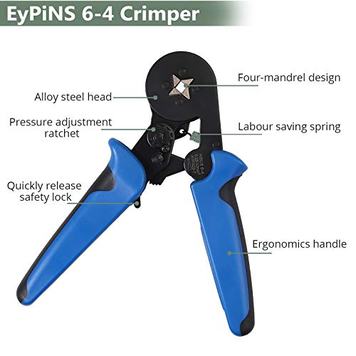 EYPINS Set di Pinze a Crimpatrice 6-40 6-4 Capicorda per 0.25-10 mm2 Terminale a Crimpare per Puntalini Assemblaggi Elettrici Elettricista e Kit di Connessione/1200 x Terminali del Connettoredel Cavo
