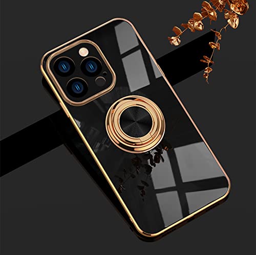 EYZUTAK - Custodia per anello magnetico elettrolitico a 360 gradi, con rotazione in metallo, supporto magnetico per auto, in morbido silicone, antiurto, per iPhone 12 Pro Max 6,7 pollici, colore: Nero